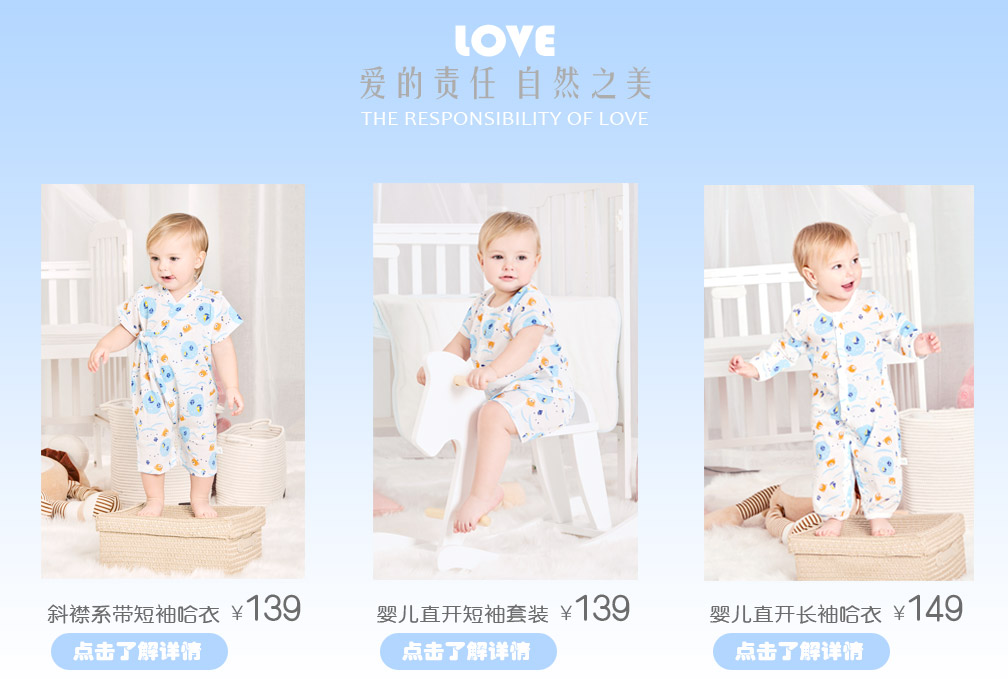 IWISHKIDS,一個(gè)嬰幼品牌。 我們?yōu)?-3歲嬰幼兒提供高端產(chǎn)品與服務(wù),產(chǎn)品主要涵蓋服飾、用品 、配飾、鞋襪等。 IWISHKIDS,一個(gè)母性品牌。 我們?yōu)?-3歲嬰幼兒寄予悉心關(guān)懷與呵護(hù),不斷追求產(chǎn)品純、柔、凈 、美(即純真、柔和、潔凈、美好)的天然、安全、輕柔、舒適,為 寶寶營(yíng)造母親懷抱的環(huán)境體驗(yàn)。 對(duì)于嬰幼兒的所需,我們深諳其道。作為一家高端嬰幼產(chǎn)品專業(yè)公司 ,從產(chǎn)品研發(fā)、設(shè)計(jì)、生產(chǎn)到銷售都自成一體,將每個(gè)環(huán)節(jié)掌握在自 己的手中,給寶寶的關(guān)愛才毫無(wú)紕漏。