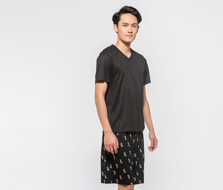 V領(lǐng)T恤印花短睡褲套裝
